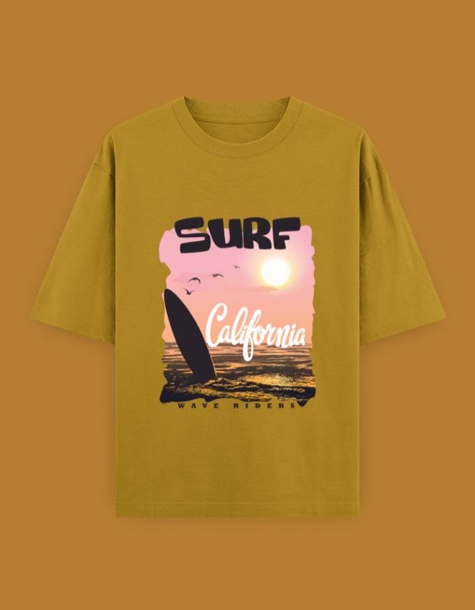 Perfect! Here’s a detailed long-form product description tailored for your Unisex Oversized Classic T-Shirt, featuring the “SURF California” design and updated specs (240 GSM, heavyweight cotton, oversized fit):